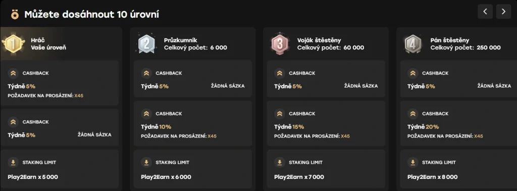 | Zlato | Personalizované VIP nabídky | Osobní správce účtu, exkluzivní promo akce |